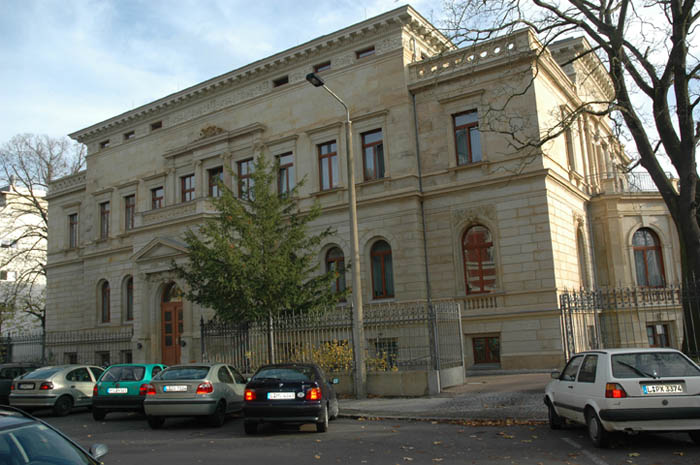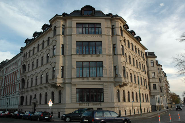 ...zwei Bauepochen, die des Historismus und die des Neuen Bauens. Zeigt der gründerzeitliche Historismus des Architekten Kurt Nebel am Äußeren seine manieristische Flexibilität von rotem Fugenmörtel zwischen gelbem Klinker bis zu den in Sandstein lebendig gewordenen Schlusssteinköpfen der Laibungen, wird im Inneren spätgründerzeitlicher Repräsentationsgeist in Farbe und Form der Renaissance interpretiert. Große Räume, imposante Stuckdecken, feinprofilierte mehrflügelige Türen sind heute Teil der gewerblichen Nutzung. Nachgeordnete Räume fanden in der großzügigen Diele ihren Platz. Die konstruktiven Gegebenheiten des Daches ermöglichten im Dachgeschoss flexible Wohnungsrundrisse und den Einbau von Dachterrassen. Der Anbau vereint Neue Sachlichkeit am Äußeren wie im Inneren. Edelputz geht hier mit Stahl-Beton einher. Respekt und Einfallsreichtum des Architekten und Stadtbaurats von Leipzig, James Bühring, überzeugen heute noch und wirken geradezu postmodern im Umgang mit bestehender Bausubstanz.