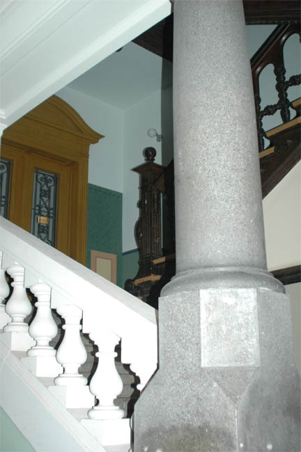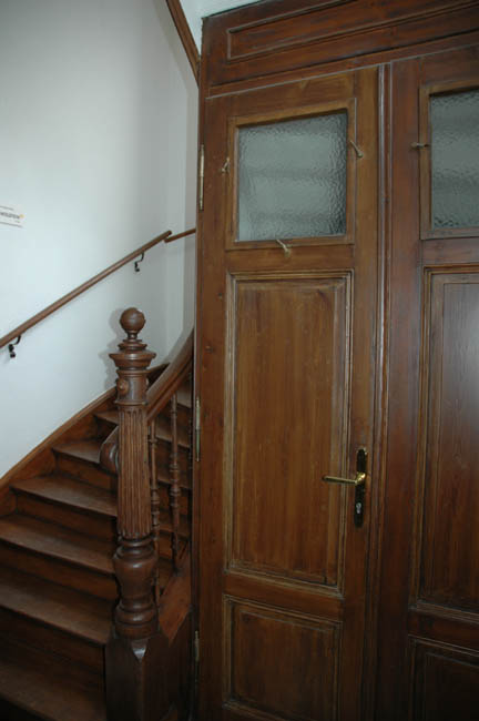 ...wurde das Haus in den 20er Jahren des 20. Jahrhunderts und danach wiederholt im Inneren umgebaut. Das giebelseitig angelegte Treppenhaus erschwerte die gewünschte Grundrissteilung. Unter Berücksichtigung der verschiedenen Bauphasen und des Bauzustands wurde der Putz nach dem Bestand der 20er Jahre und die erhaltenen Fenster und Laibungen entsprechend dem der Mitte des 19. Jahrhunderts instand gesetzt.