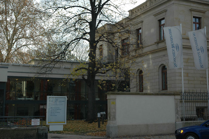 ... errichtete Villa verlor mit der medizinischen Nachkriegsnutzung ihre historische Ausstattung. Die neue Nutzung für altersgerechtes Wohnen und die Gewährleistung von Rettungswegen erforderte einen Anbau, ohne die Denkmaleigenschaft der Villa in Frage zu stellen. Der zwischen die Risalite gesetzte Bau stellt die Verbindung zu dem gleichermaßen unter Denkmalschutz stehenden Nebengebäude her, das so einer Nutzung zugeführt und saniert werden konnte.