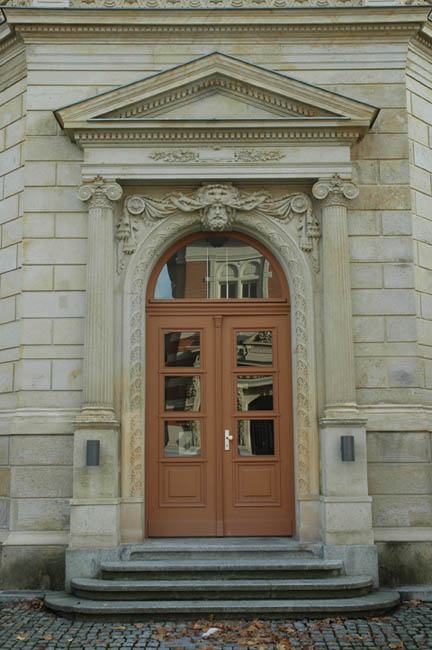 ... errichtete Gebäude war in den 70er Jahren saniert worden. Der historische Putz und die abgeschlagenen Profil konnten durch die sich auf den Sohlbänken noch abzeichnenden Umrisse rekonstruiert werden. Der nur in den Planunterlagen und in Fragmenten nachweisbare Wintergarten wurde nicht rekonstruiert. An seine Stelle trat eine filigrane moderne Stahl-Glas- Konstruktion.