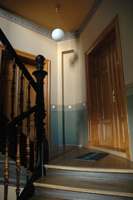 ...charakterisiert ein großes Vestibül, von dem sich die zur Straße gelegen Haupträume erschließen. Der Erhalt der Stuckdecken und der Zimmertüren trägt mit dem eindrucksvollen Treppenhaus und aufwendig instand gesetzten Wintergärten zur besonderen Wohnqualität des Baudenkmals bei. Die Vielfalt der Fensterprofilierungen der Gründerzeit und der Jahrhundertwende hat zu großen Fortschritten in der Produktion und einer Reduzierung der Kosten bei der Rekonstruktion historischer Fenster geführt. Besondere Bedeutung kam dem Erhalt der historischen Dachgauben, bei gleichzeitiger Gewährleistung des Rettungsweges und der Verbesserung der Lichtverhältnisse, des jetzt für Wohnungen genutzten Dachgeschosses zu.